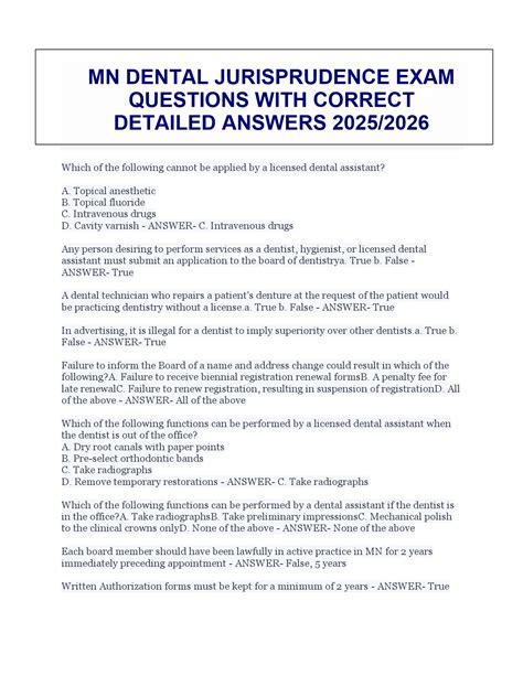 Download DENTAL JURISPRUDENCE EXAM QUESTIONS PDF